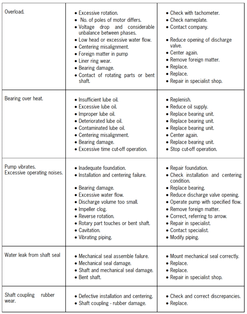 (6) Turn the pump shaft by hand once every week if the pump is stopped for long time.